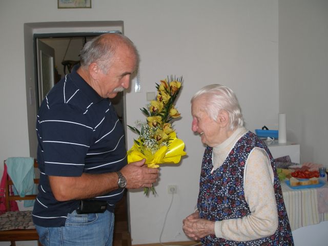 29. 9. 2014 - 95. narozeniny paní Růženy Maršíkové - blahopřeje pan starosta Suchý