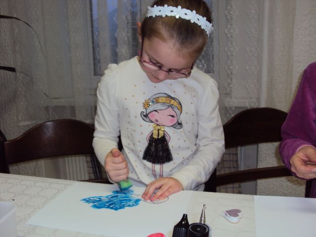 Adélka vyrábí obrázek