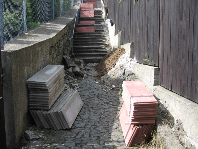 Oprava schodů v uličce u Papežů - 7.8.2009