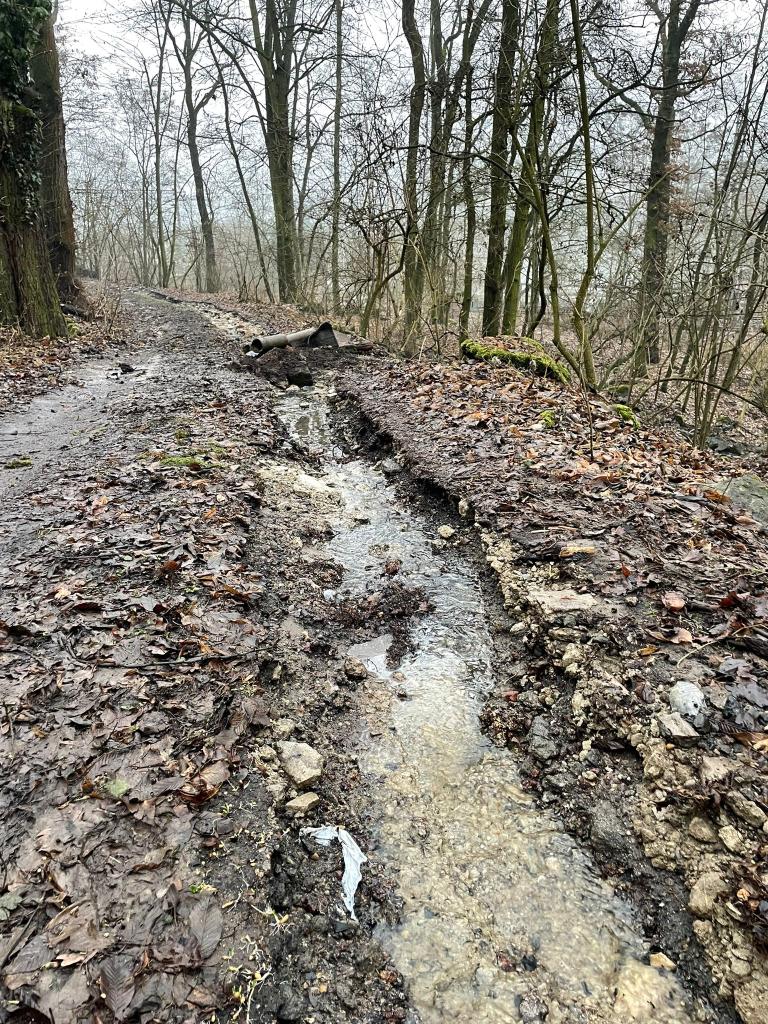 Ucpal se mostek přes potok, následkem čehož se voda vylila na přilehlou lesní cestu. Odtud proudila dále do ulice Za Vodárnou a do kolejiště.
