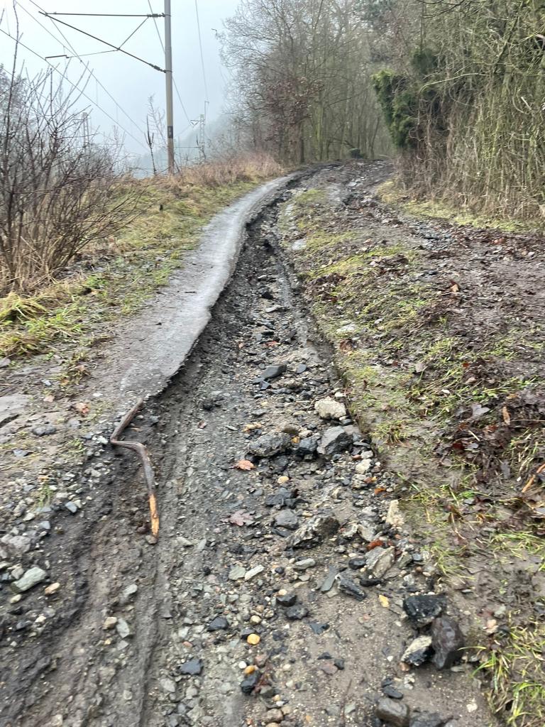 Vlivem proudění vody došlo k poškození místní účelové komunikace,