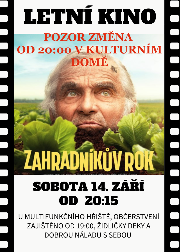 V sobotu 14.9. vás zveme na poslední letošní promítání. Připravili jsme pro vás film ZAHRADNÍKŮV ROK.